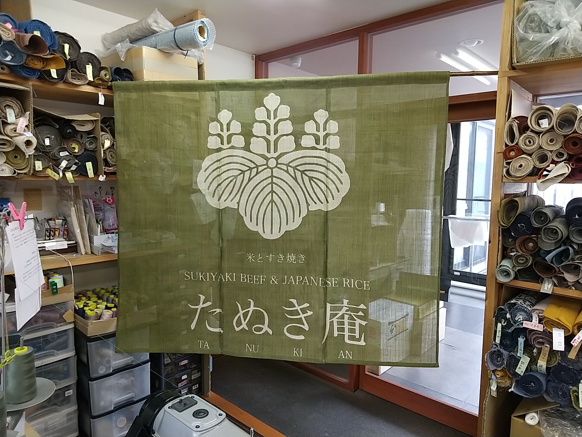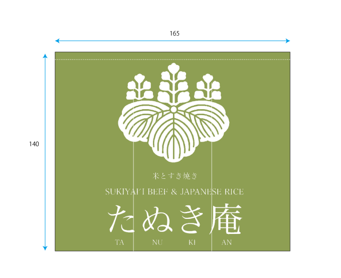 のれん 手織麻 デザインあり(手染め) 利休 W165xH140cm 3連 袋縫