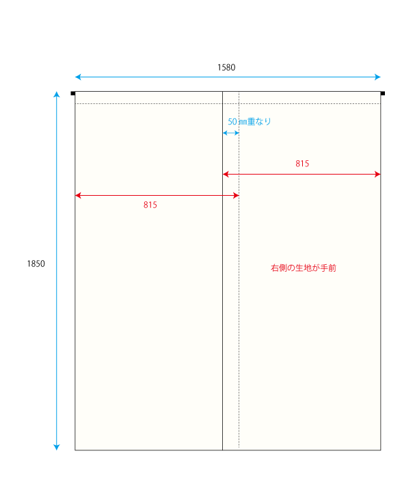 綿のれん 無地 生成り 中心50㎜重ね W1580xH1850