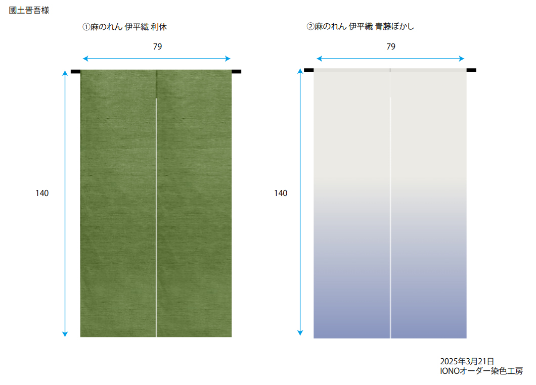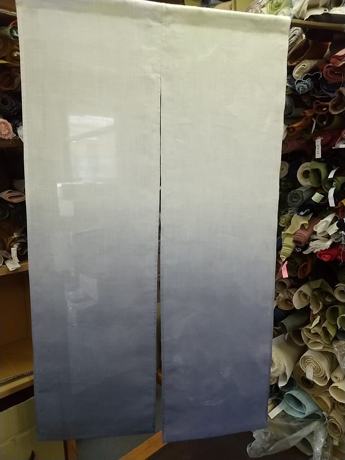 ②麻のれん 伊平織 生成り 青藤ぼかし W79xH140cm 2連 袋縫