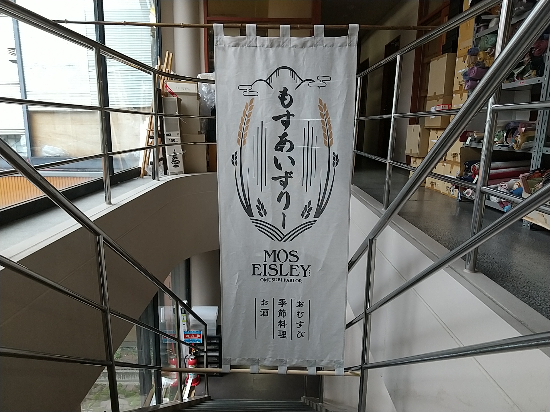 日除け幕 麻(伊平織) デザインあり(プリント) 生成り W75xH200cm 1連 乳付き 撥水