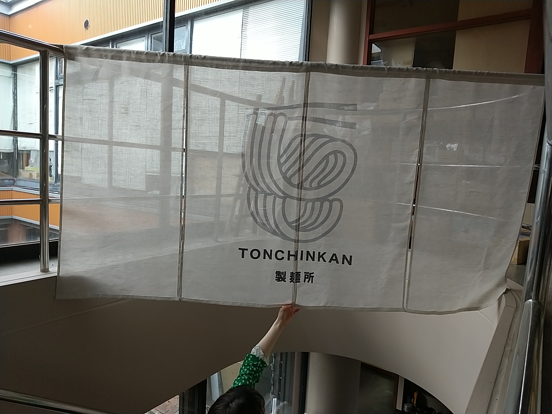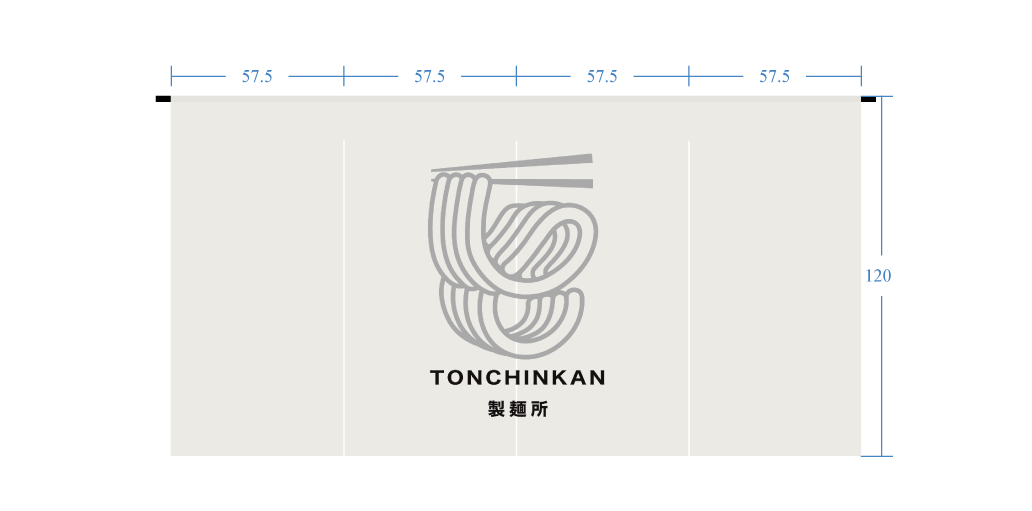 のれん 麻(伊平織) デザインあり(プリント) 生成り W230xH120cm 4連 袋縫