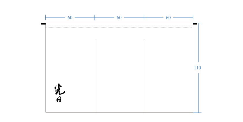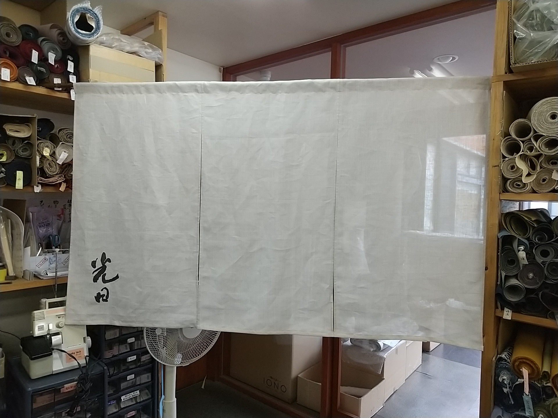 のれん 麻(伊平織) デザインあり(プリント) 生成り W180xH110cm 3連 袋縫