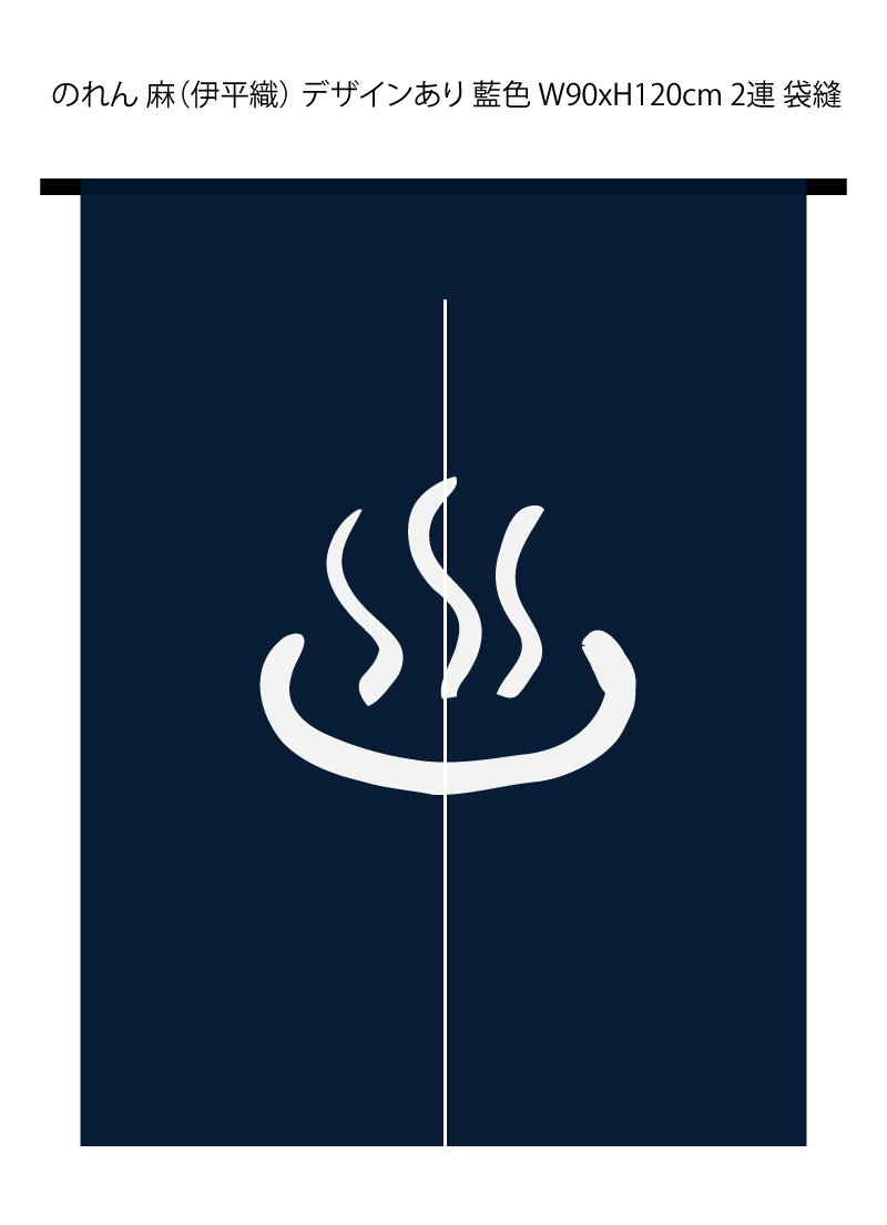 のれん 麻(伊平織) デザインあり 藍色 W90xH120cm 2連 袋縫