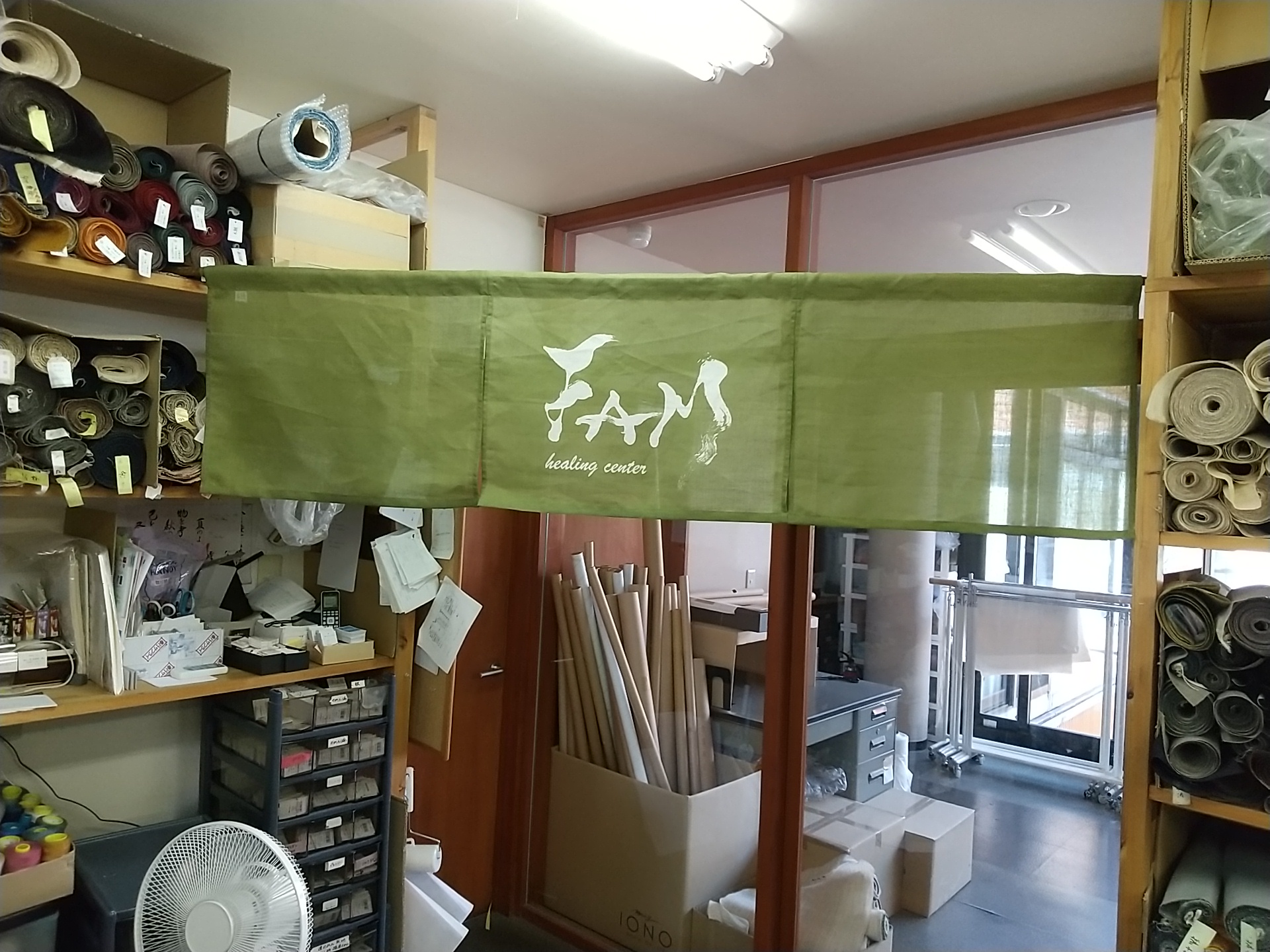 のれん 麻(伊平織) デザインあり 利休 W188xH50cm 3連 袋縫