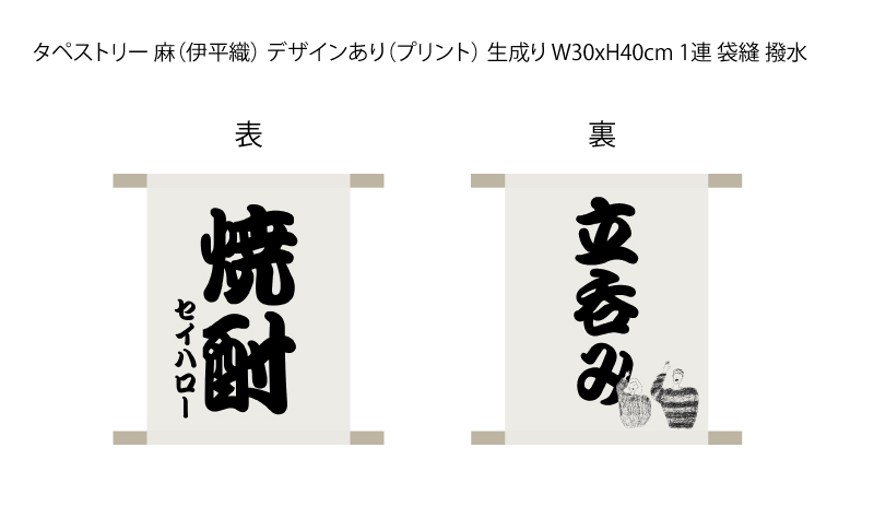 タペストリー 麻(伊平織) デザインあり(プリント) W30xH40cm 表裏2枚合わせ 袋縫 撥水