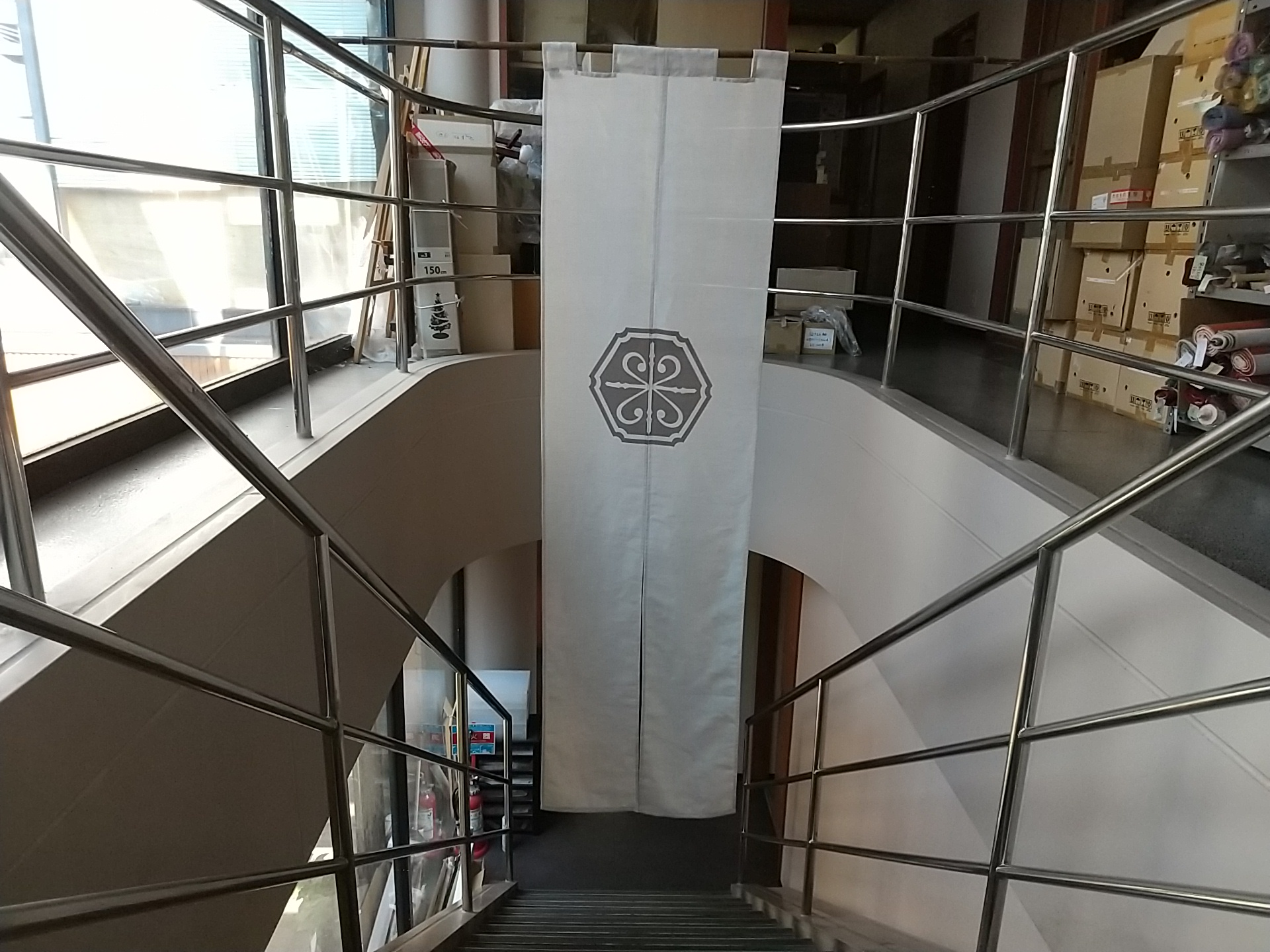 ①のれん 麻 伊平織 生成り ロゴ(プリント)・防炎加工