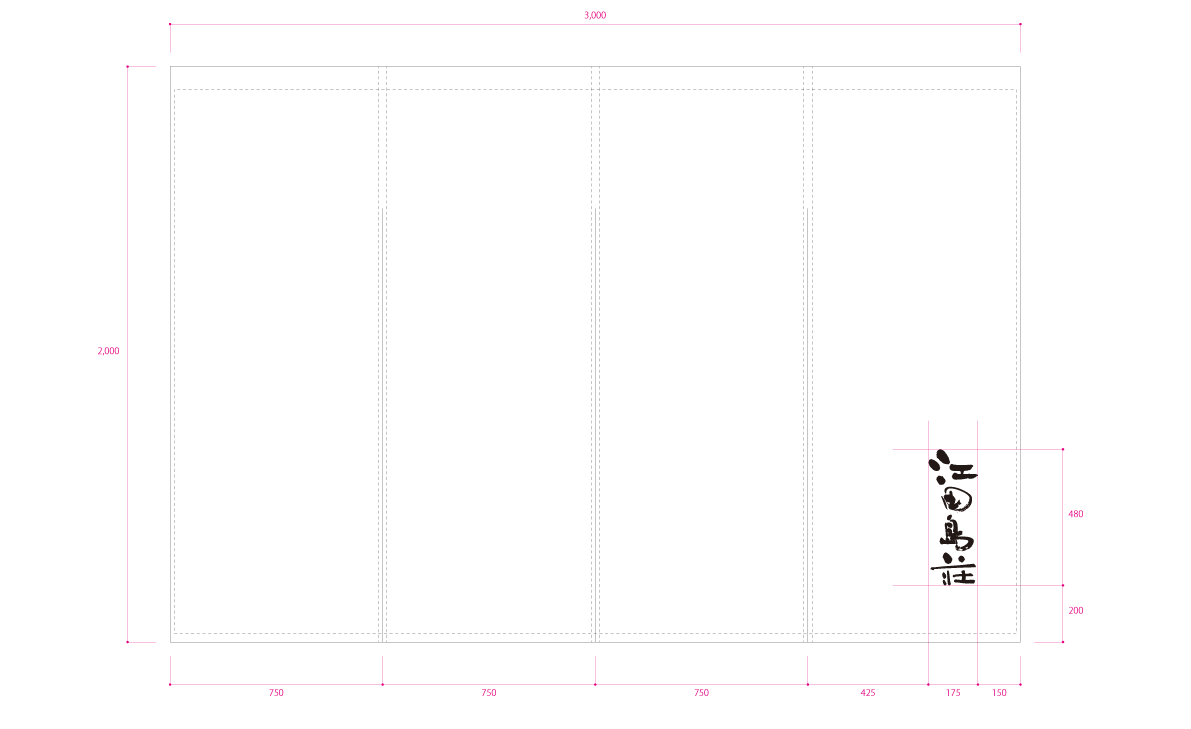 のれん 麻(伊平織) 生成り 型染め W300xH200 cm 4連 袋縫 撥水加工