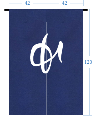 のれん 綿(光糸織) デザインあり 藍色 W84xH120cm 2連 袋縫
